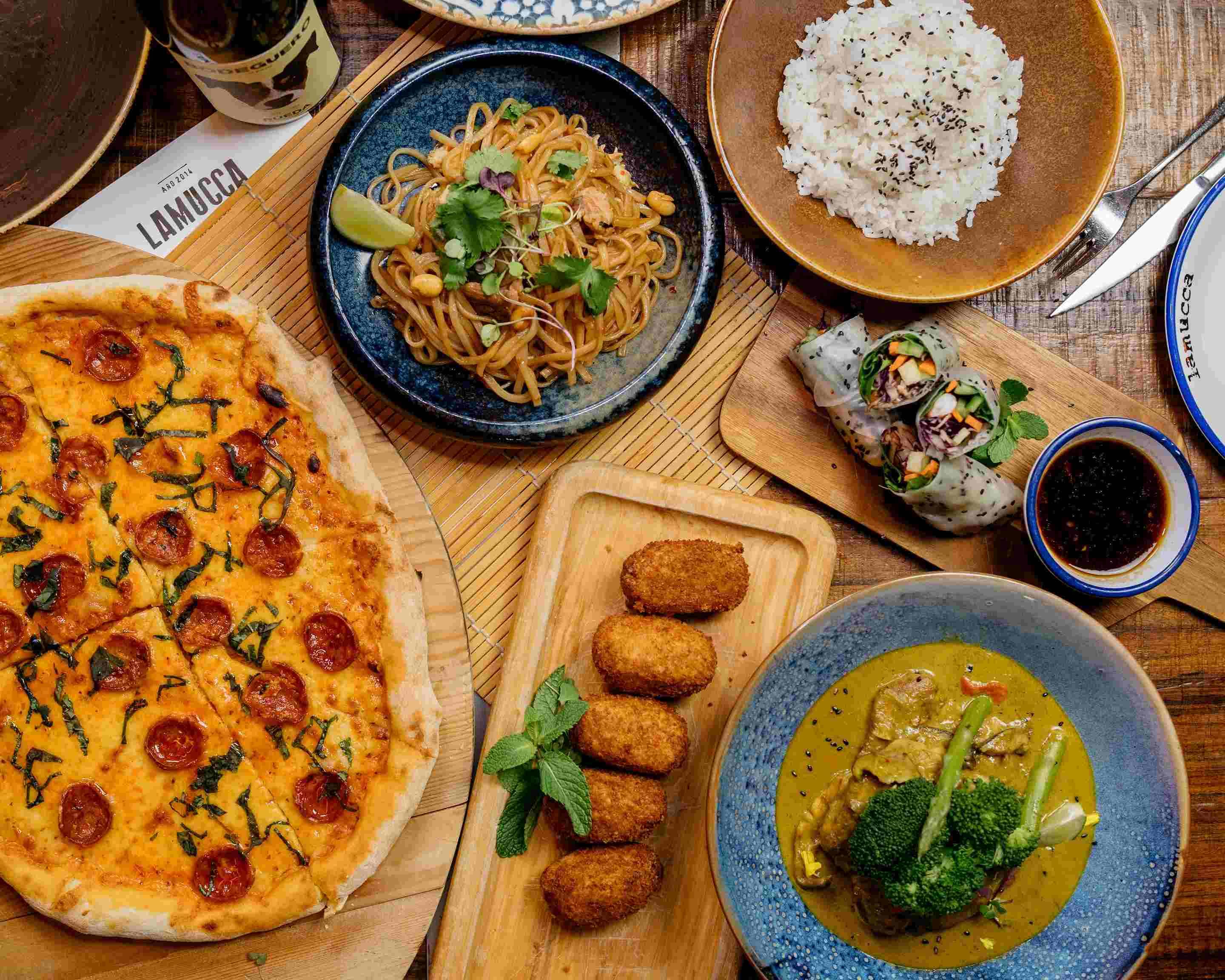 La carta es muy variada, con precios ajustados, pasando por nachos riquísimos, ceviche, platos italianos con pizzas de calidad, hamburguesas, hasta pad thai y pollo al curry.